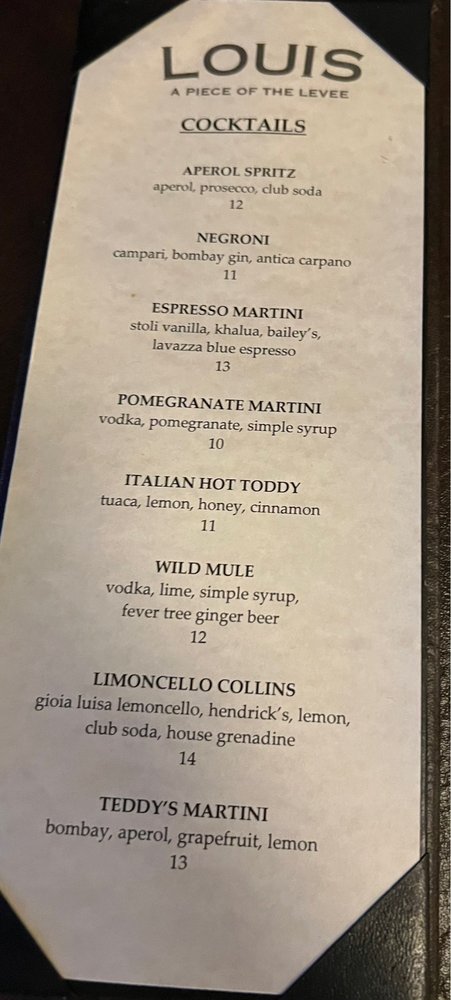 Louis Ristorante & Bar Menu
